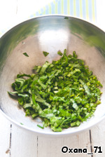 Черемшу хорошо вымыть и немного обсушить. Затем мелко нарезать.