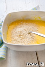Кефир, рикотту и яйца хорошо размешать венчиком, посолить.
