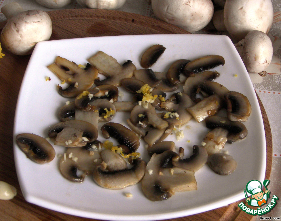 Посыпать обжаренные грибы цедрой и чесноком, полить соком лимона. |