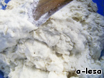 Вымешивать, пока тесто не станет однородной клейкой массой, жидковатой (не как на обычный хлеб).