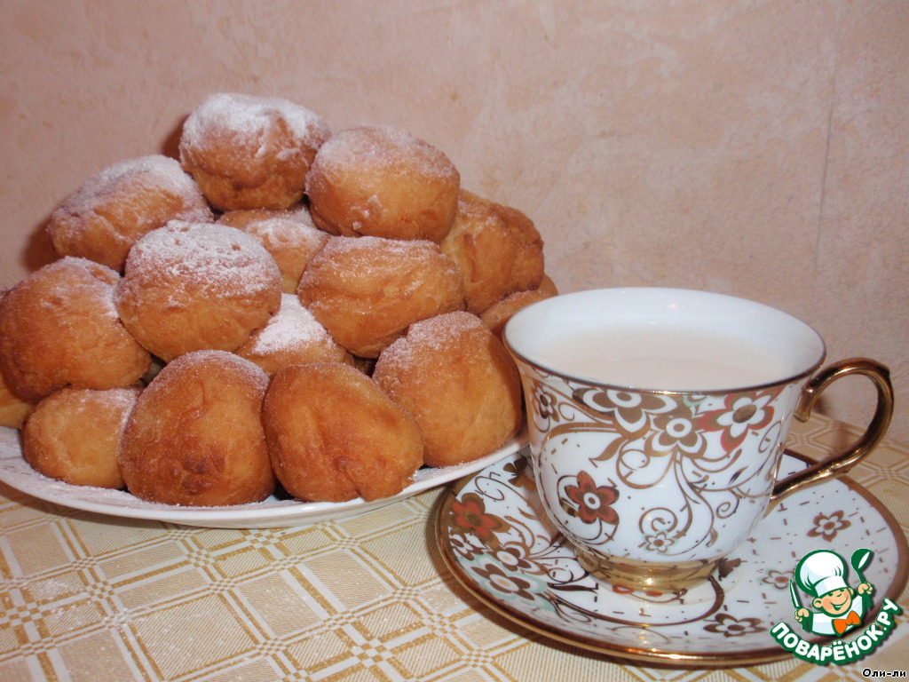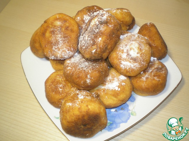 В кастрюле разогреть растительное масло и обжарить наши шарики до золотистого цвета. Выложить на блюдо и посыпать сахарной пудрой. Приятного аппетита!!!