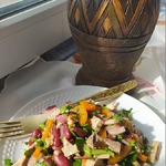 Очень вкусный и нарядный салатик! Сытный и в то же время не тяжелый. Попробуйте!