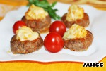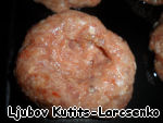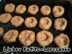 Замачиваем 2 ломтика сухого чёрного хлеба, чуть-чуть отжимаем, отделяем мякоть от корочек. Яйца, перец, соль, хлеб выкладываем в фарш. И я думаю, что в для этих котлет можно взять абсолютно любое мясо, тут уж кто как любит. Перемешиваем. Разделяем полученный фарш на кругленькие порции размером примерно 6 см. Формуем из них котлеты с углублением в середине. Сначала я попробовала на противне это проделать и как-то мне неудобно было, кружилась возле этих котлет, как вокруг бильярдного стола..:) Потом в ладошке выдавила маленькой кофейной ложечкой, подкорректировала каждую на противне. И вот такая пухленькая полуобнажённая "натурщица" получилась.. :)