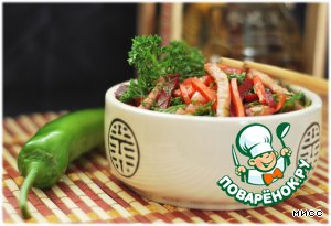 Для любителей острых салатов и Китайской кухни. Рецепт этого блюда был размещeн на сайте в 2009 году пользователем Ксюлия под названием "Китайский салатик" и иллюстрирован мной в рамках акции "Раскраски".