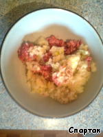 Пропускаем через мясорубку лук и добавляем в фарш.