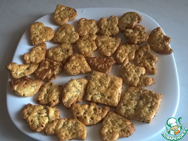 Тесто раскатать до 2 мм и вырезать крекеры разных форм.