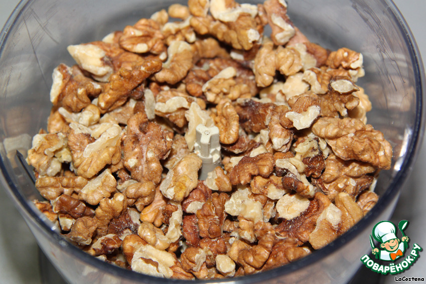 Грецкие орехи выкладываем в блендер, оставим штук 10 на украшение