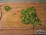 Киви очистить и нарезать кубиками, оставив ломтик для украшения
