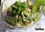 Недавно (с огромной опаской!) "на пробу" добавила киви в овощной салат и была поражена, насколько здорово этот фрухт сочетается с прочими ингредиентами. Киви придает очень свежую и необычную нотку! Так что кто еще не пробовал, дерзайте!