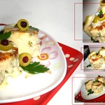 Рецепт этого блюда был размещен на сайте в 2009 году пользователем timoxa под названием "Запеченная рыба с оливками" и иллюстрирован мной в рамках акции "Раскраски".