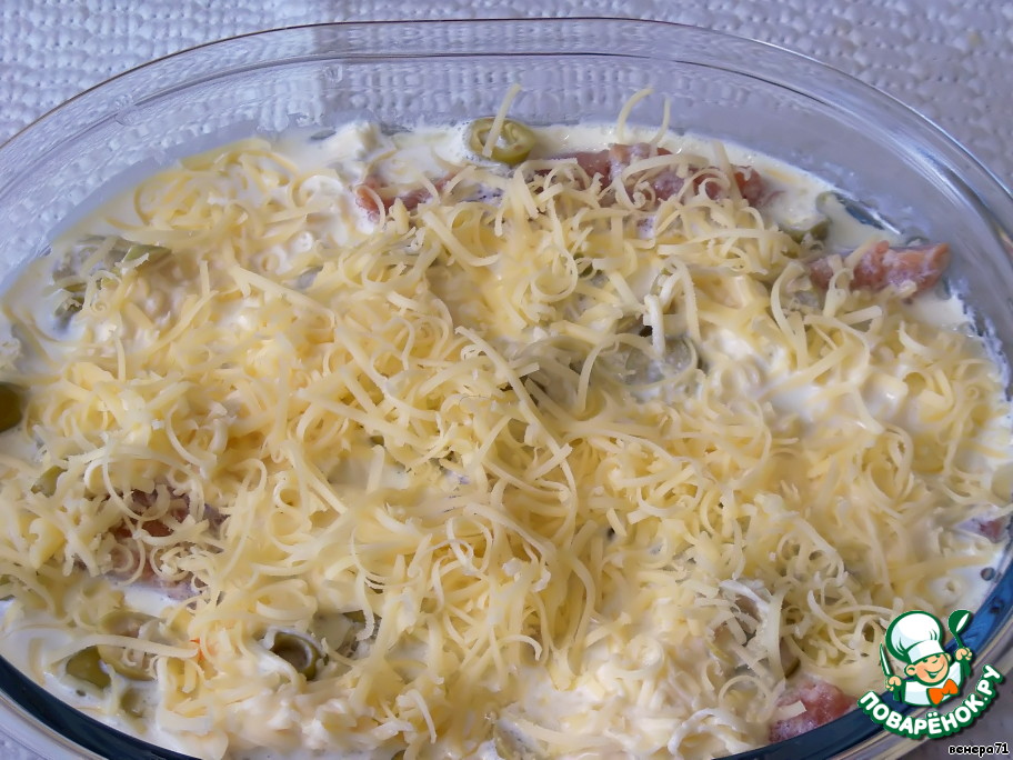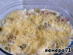 Посыпать оставшимся сыром и запекать при температуре 200 градусов 20 минут (ориентируйтесь по своей духовке).