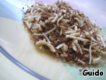 Фарш, присыпав мускатным орехом и черным молотым перцем, ставим в микроволновку. Режим СВЧ + Гриль. 600W/30 минут. На выходе - "хрустики".