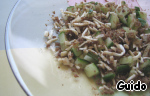 Кто не любит слишком соленого, добавим свежих огурцов. Они нейтральные, "перебивают" соленость.