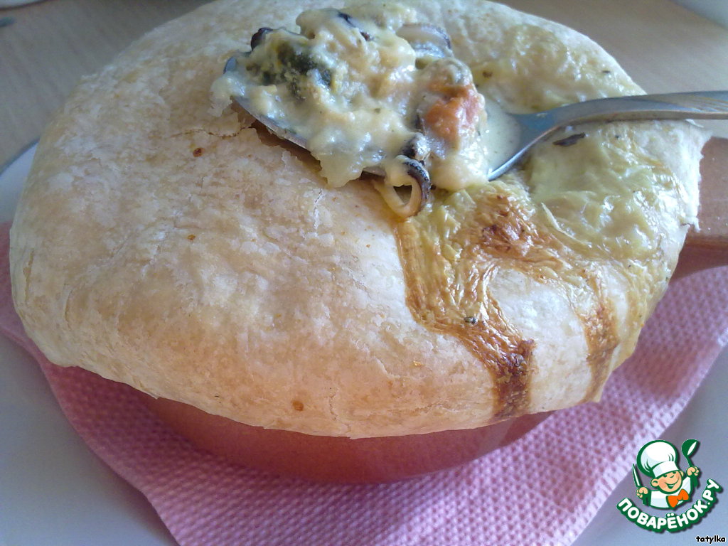 Думаю, будет неплохо, если к мидиям добавить ещё какого-нибудь сыра, типа моцарелла или пармезан. Слоёное тесто здесь не только для красоты и выполнения непосредственной функции "крышек", их очень вкусно кушать (отламывая кусочками) вприкуску с мидиями.