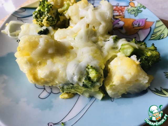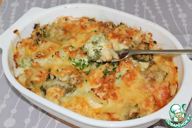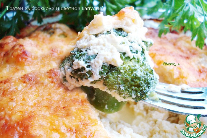 Рецепт «Гратен из брокколи и цветной капусты»: