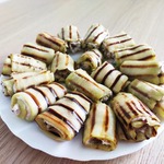 На блюдо, украшенное листьями зеленого салата, выкладываем рулетики и подаем к столу.