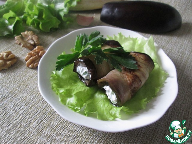 Рецепт «Рулетики из баклажана с грецкими орехами»: