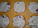 Разложить в формочки на 2/3 объема. Тесто увеличивается, но не очень сильно. У меня получилось 12 "розочек" и 6 кексиков-малюток. Если у вас не силиконовые формы, смажьте их растительным маслом. Выпекать необходимо в духовке 25-30 мин. при температуре 180*.