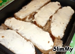 Полученную смесь вылить на хлеб и аккуратненько разровнять, чтобы хватило на все кусочки.
