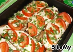 На хлеб выложить нарезанные помидоры и зеленый лук. По желанию хозяйки в эту запеканку можно добавлять разные ингредиенты: репчатый лук, чеснок, болгарский перец, можно даже колбасу :)
