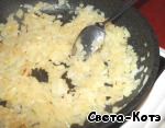 Лук режем небольшими квадратиками и жарим до золотистого цвета.