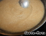 На сухую сковородку насыпаем манку и прожариваем до светло-коричневого цвета, затем добавляем воду, при этом помешивая, чтобы получилась густая каша (воды примерно 200 мл)