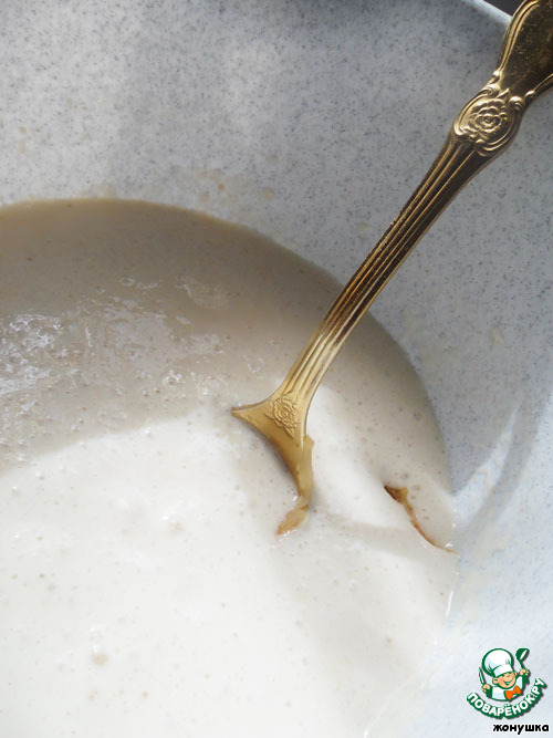 Для опары половину нормы муки смешиваем с теплым молоком и дрожжами, ставим в теплое место. Когда опара поднимется, добавляем яблоки, растопленное сливочное масло, оставшуюся муку и яйца.