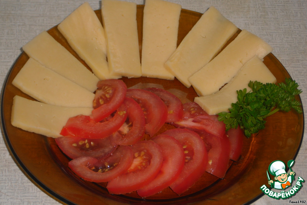 Помидоры нарезать тонкими дольками, сыр – ломтиками.