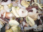 • Берём замороженный морской коктейль, его можно отварить (около 5 минут), но я предпочитаю обжарить до выпаривания жидкости на оливковом масле.