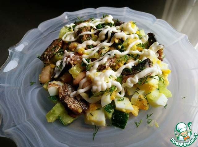 Рецепт «Салат "Оригинальный" с фасолью и шпротами»: