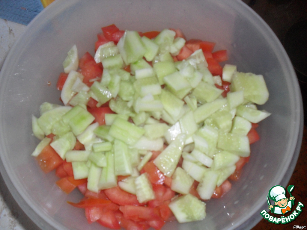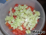 Овощи режем маленькими брусочками. У меня не было времени особо мельчить, поэтому я нарезала не так мелко (вкус от этого не ухудшился)