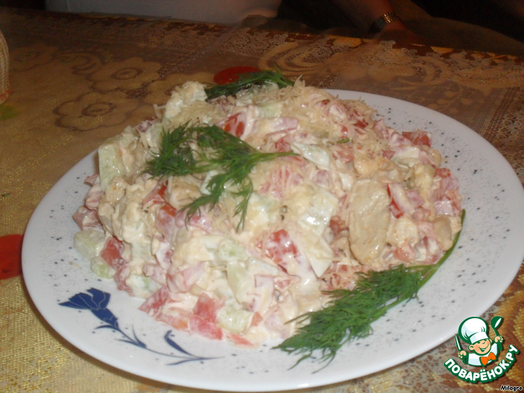 Добрый вечер всем прекрасным кулинарочкам и кулинарам! Всегда восхищаюсь вашими рецептами, с удовольствием беру на заметку, и вот решила поделиться своими рецептиками! Этот салатик мы кушали в прекрасном санатории "Лунево" на Волге. Вроде он в меню назывался "Эльзасским", но в интернете решила уточнить и увидела, что "Эльзасский" салат совсем другой, поэтому решила дать салату такое название!