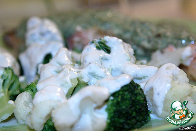 Заливаем брокколи соусом и слегка перемешиваем (аккуратно).