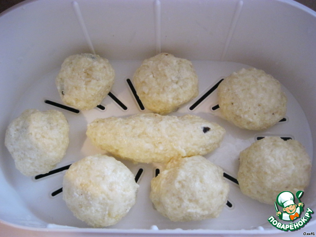 Получаются вот такие шарики, включаем пароварку на 30 минут и... |