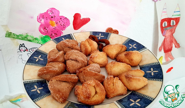 Готовые "ушки" выложить на противень с промасленной бумагой и выпекать 15-20 минут при температуре 200