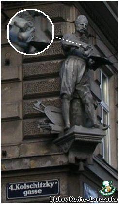 Австрийцы помнят и чтят украинца, ведь именно ему должен быть признателен за славу всемирно известный венский кофе. Еще в 1862 г. одна из венских улиц была названа в честь Юрия-Франца Кульчицкого — Kolschitzkygasse. До сих пор в Вене на улице Фаворитенштрассе существует кофейня с красноречивым названием Grand Cafe Zwirina zum Kolschitzky, а в 1885 году на средства местного кофейщика Карла Цвирины на одном из угловых зданий по улице имени Ю.-Ф.Кульчицкого была установлена бронзовая скульптура работы известного скульптора Эммануила Пендля. Это одетый в турецкое платье казак-галичанин в полный рост, в левой руке держащий поднос с небольшими чашечками кофе. В ногах бронзового Кульчицкого турецкие трофеи — хоругви с полумесяцами, кривые сабли (ятаганы) и бунчуки. Среди них вьются лавровые ветви с листьями в честь подвига одного из героев победы над турками под Веной 1683 г., к тому же открывшего для европейцев столь ароматный и вкусный напиток. Вот так и стоит он сегодня, покровитель всех венских кофеен, держа в руках поднос и кофейник, на углу улиц Фаворитен и Кульчицкий – писатель и воин, авантюрист и герой Юрий Франц Кульчицкий, который научил европейцев пить кофе с рогаликами.