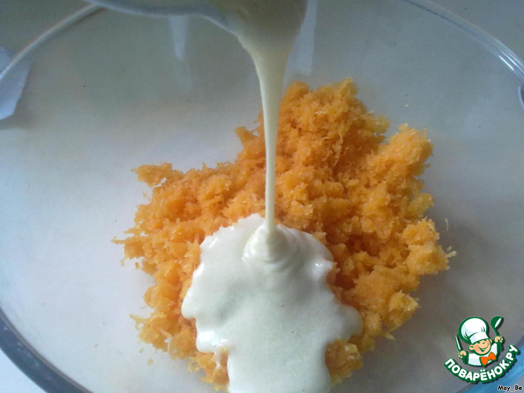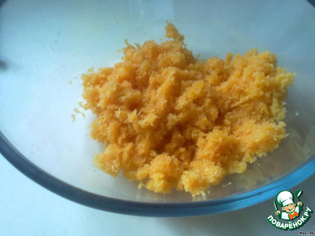 Тыкву очистить, натереть на мелкой терке или измельчить в комбайне.