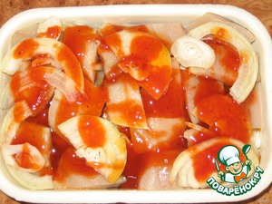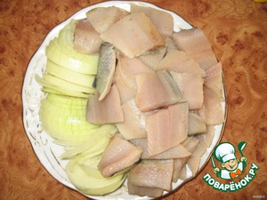 Сложить все в лоточек или кастрюльку чередуя филе, лук, маринад, сверху вылить весь.