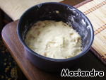 Замешенное однородное тесто выливаем в смазанную маслом форму. Отправляем в духовку на минимальную температуру - у меня 50*. Оставляем тесто подниматься. Оно будет подниматься активно, поэтому форму заполняем тестом лишь на 1/3. На расстойку требуется минут 40.