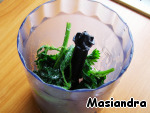 Зелень положить в блендер, добавить немного соли (по желанию) и перемолоть.