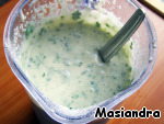 Все ингредиенты для оладьев смешиваем блендером, к получившейся однородной массе добавляем измельченную зелень крапивы и одуванчика.
