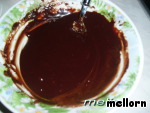 Одну часть набухшего желатина распустить на водяной бане (не кипятить). И добавить к шоколаду. Тщательно перемешать. Масса должна остынуть и немного загустеть.