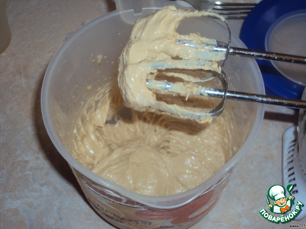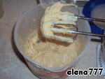 • Отделить белок от желтка. Желток взбить с 4 ст.л. сахара и ванилином. Добавить размягчённое сливочное масло, снова взбить. Кофе развести в тёплом молоке и влить тонкой струйкой в приготовленную массу, непрерывно взбивая. Всыпать кокосовую стружку и муку, хорошо перемешать.