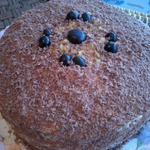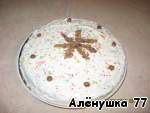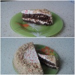 [+5]Бисквит у меня шифоновый (просто я не люблю сухие бисквиты), в пропитке не нуждающийся, поэтому нотка кофейности была добавлена путем "припудривания" нижнего коржа кофе мелкого помола. Для коржей d20 я готовила половину порции крема (он получился текучей консистенции, т.к. творог домашнего приготовления, пастообразный).