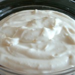 Смешать творог (я беру обезжиренный), лимон и полстакана сахара. Немного взбить (лучше блендером). Сначала взбивать будет трудно, но при взаимодействии с лимоном творог становится пышным и мягким. Если крем получается совсем густой, можно добавить 1-2 ст. л. сметаны, кефира или молока.