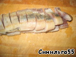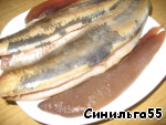 Селедку разделать на филе - отрезать голову и хвост, снять кожу, вынуть все кости. Отличный мастер-класс есть у Нины-супербабушки.