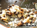 Затем обжарила мелко нарезанные шампиньоны и лук до готовности.