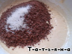 Яйца взбить с размягченным маслом и сахаром. Я сначала взбила яйца с сахаром, и потом добавила масло.