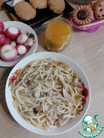 Даeм закипеть нашему бульону, кладeм сливочное масло, спагетти, приправу.