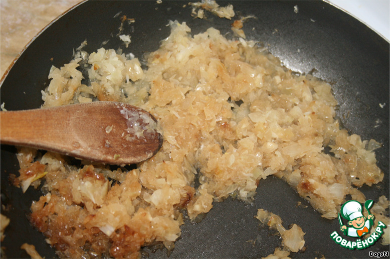 Лук мелко нарезать, обжарить.